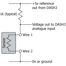 Please note that it is the installer responsibility to choose the correct value of “pull up” resistor when using 1 or 2 wire sensors with Race Technology products. For a particular sensor type there is no “correct” value of resistor however it must be selected to be “somewhere near” to ensure: