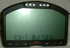 step 1: The UP, DOWN and SELECT buttons may be programmed to add lap and sector markers. To do this, locate the "EDIT BUTTONS" function on the DASH2s' main menu, and press select.