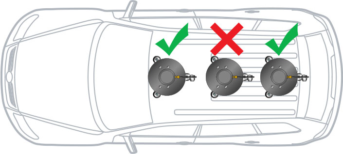 - It must be mounted on an area of the roof with high stiffness, this is typically on the leading or trailing edge of the roof. Do not mount in the centre of the roof.