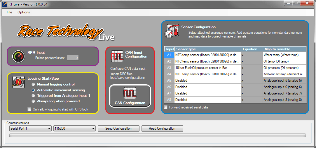 • analogue input 3 is set up to expect an optional RT oil pressure sensor